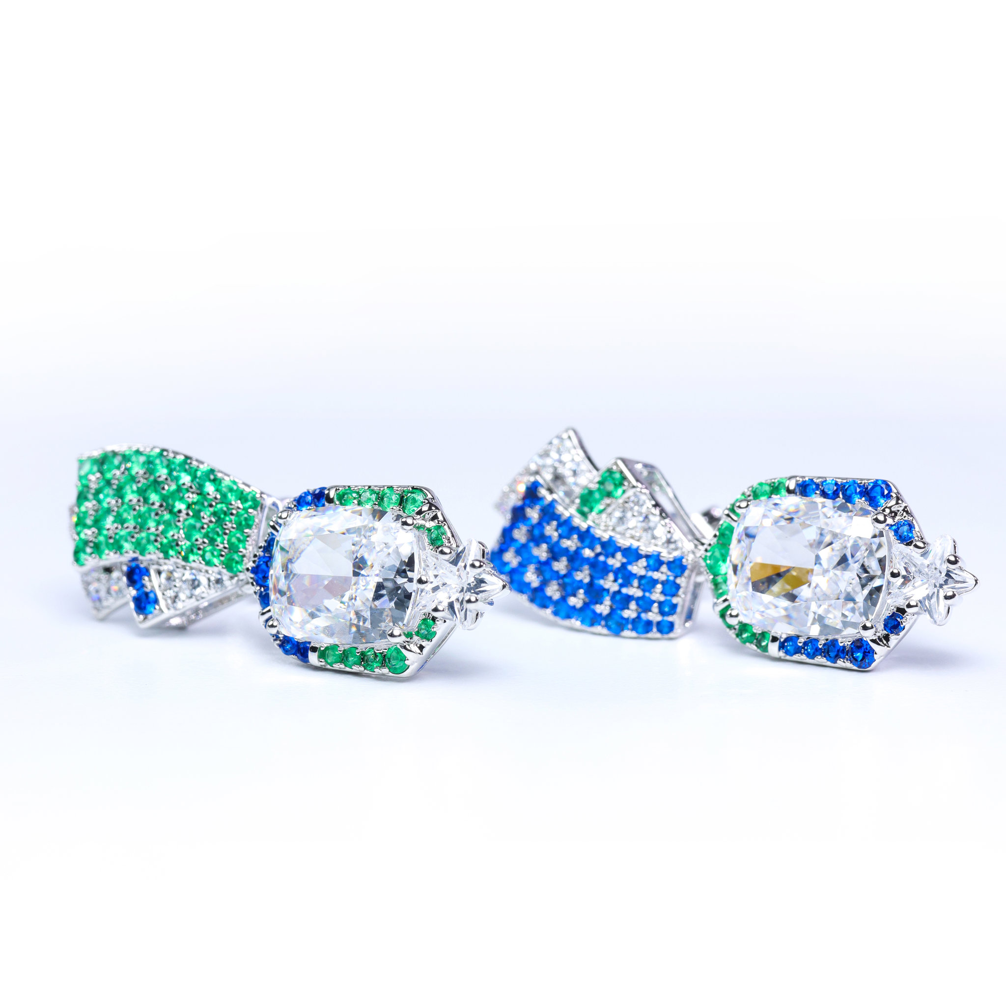18K Gold Plated Emerald-Cut Emerald Halo Stud Earrings with Cubic Zirconia