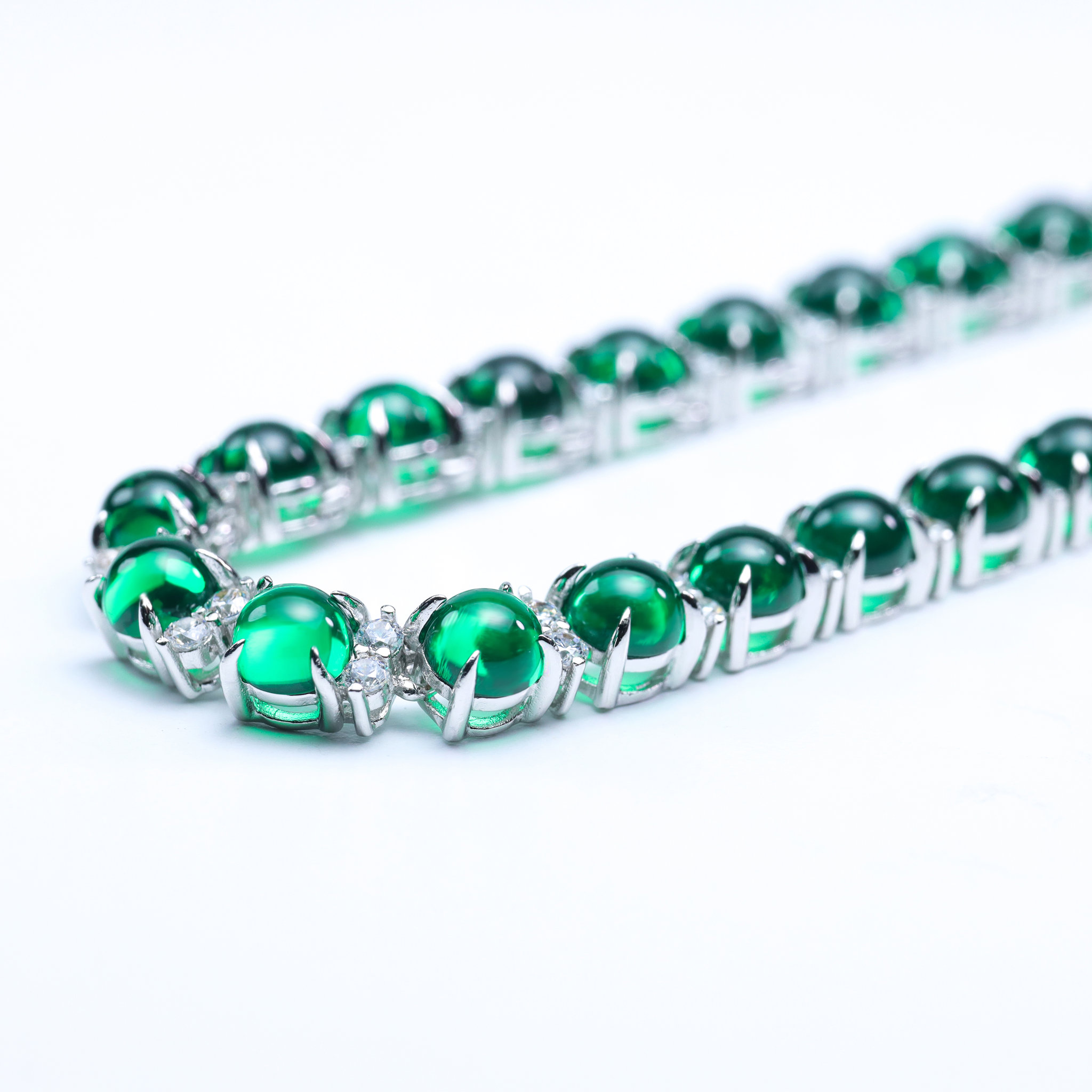 Design: Full-circle emerald tennis style, elegant and timeless
