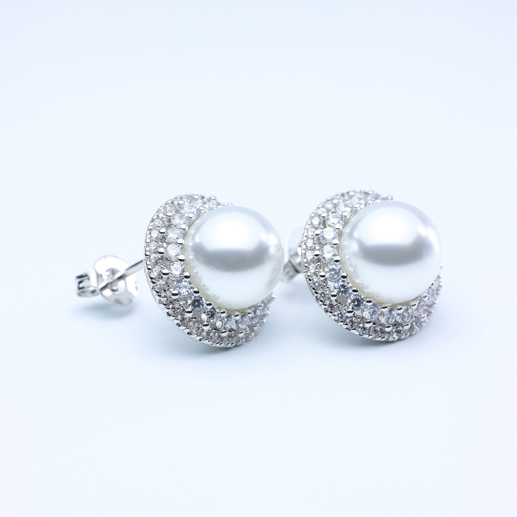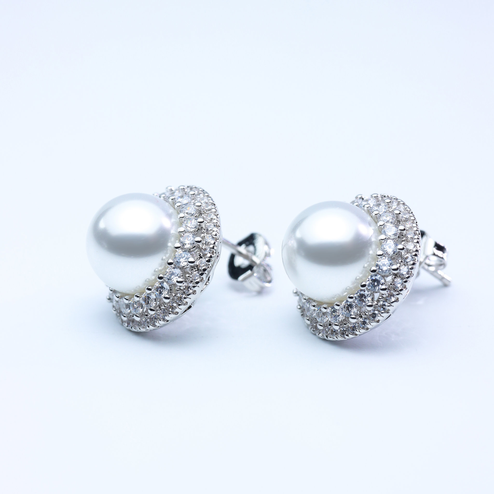 The high-luster simulated pearls and brilliant zirconia halo create a luxurious look that pairs beautifully with bridal styles, office outfits, and evening dresses—an effortless classic in any jewelry collection.