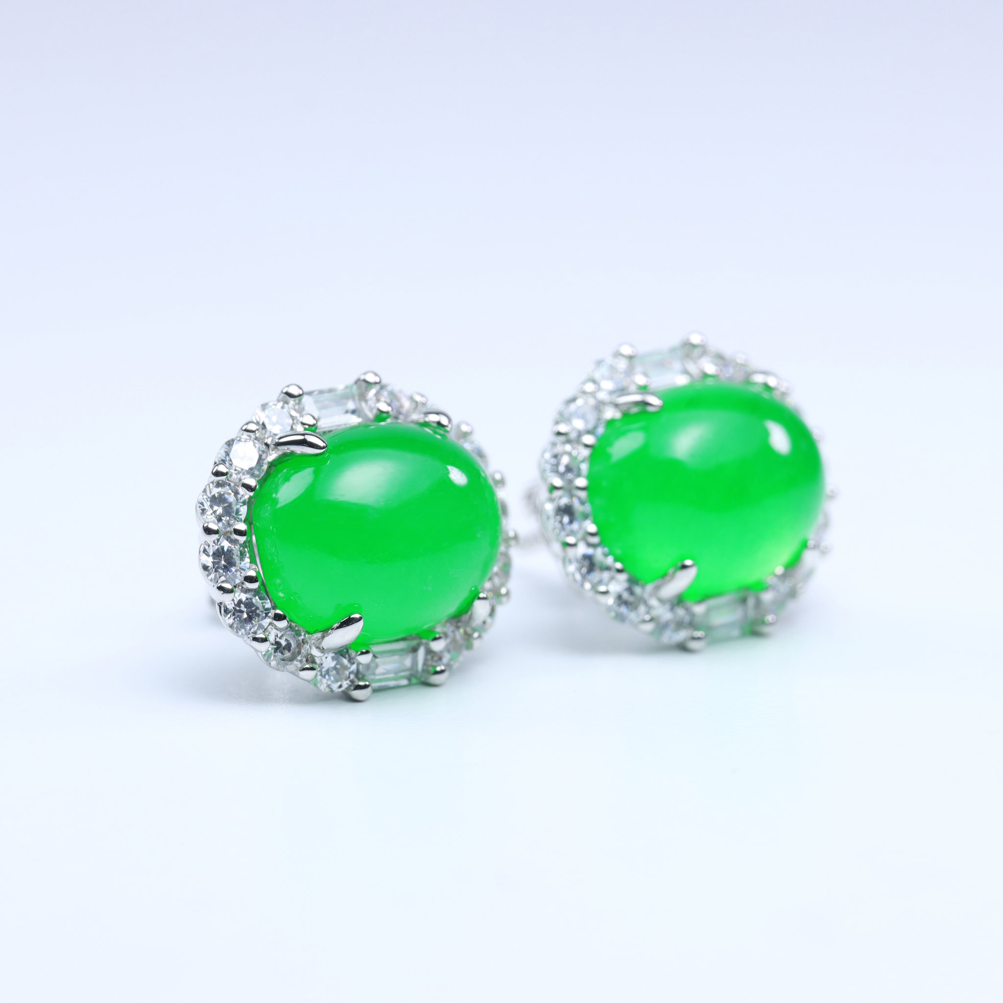 Stones: Lab-created jade cabochon & clear cubic zirconia